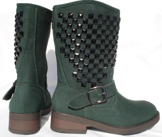 Botas STUDS verdes com tachas pretas, as botas são feitas em nobuck a sola é em borracha. TAMANHOS DISPONÍVEIS: 36,39,40 e 41.